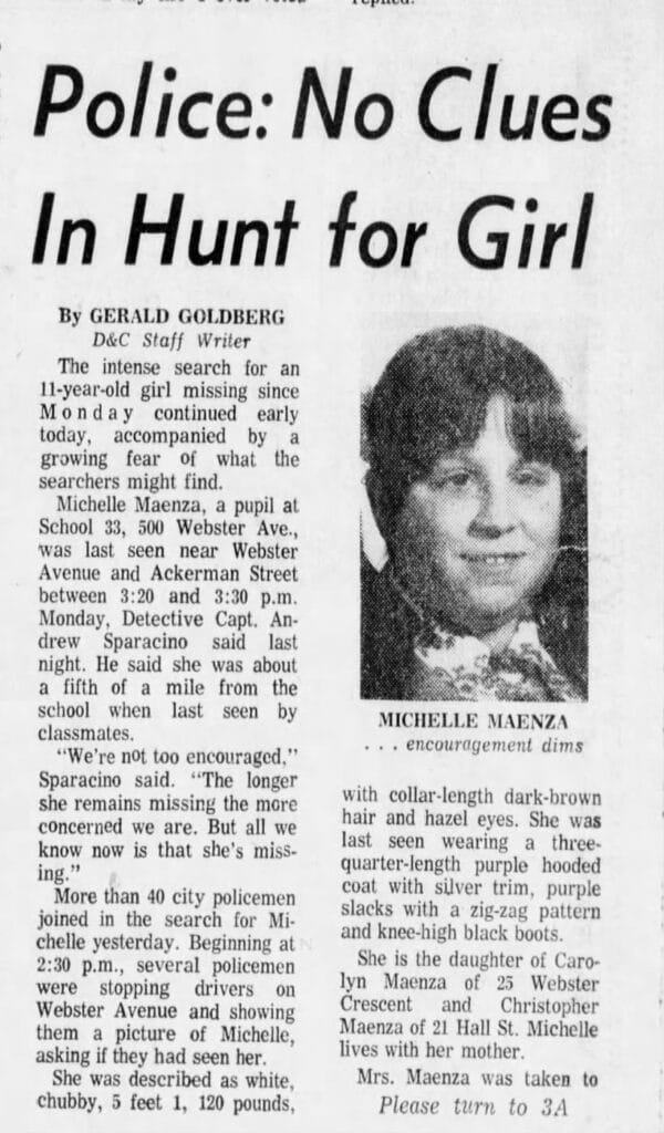 Just seven months later, 11-year-old Michelle Maenza was reported missing when she didn’t come home from school. Michelle was last seen by her classmates walking towards a shopping center.