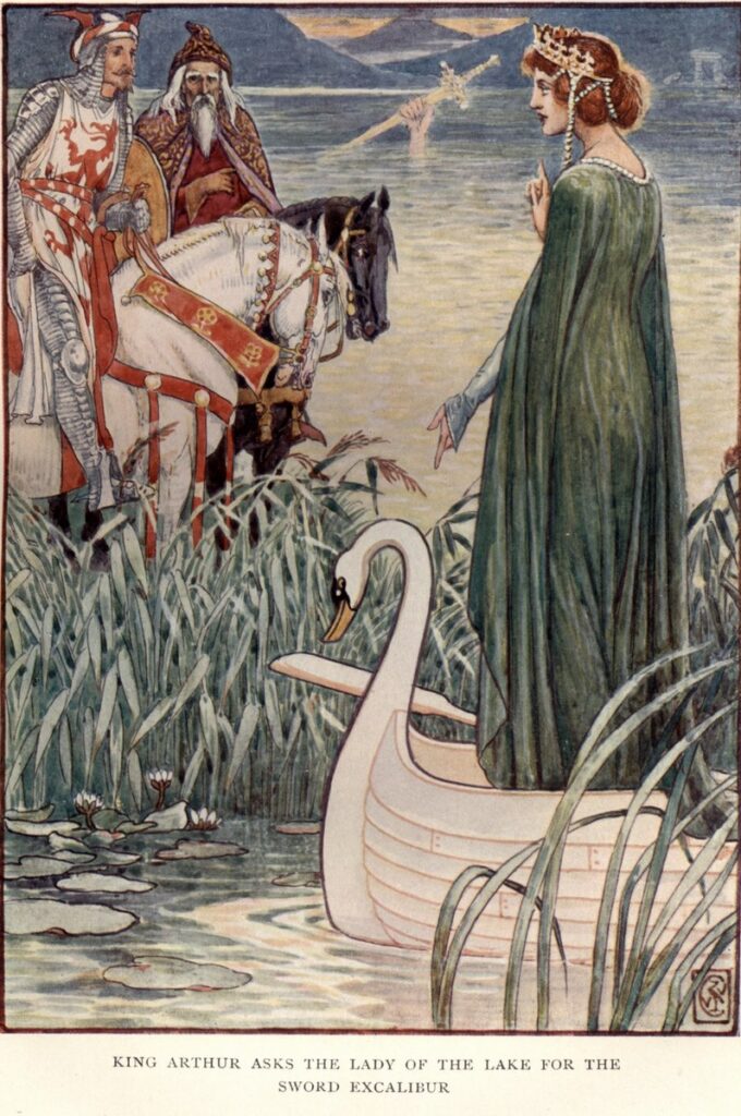 A hand broke the surface of the water and the mystical Lady of the Lake appeared with a gift – a sword – the Excalibur. The Lady of the Lake had been known as a Celtic goodness and was closely associated with other fairies of the water.