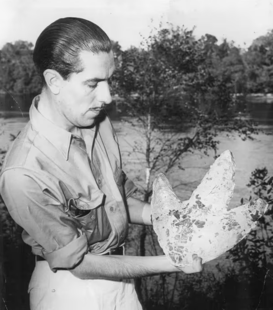 Sanderson holding a plaster cast of the monster’s footprint after a sighting near Cross City in 1948. Tampa Bay Times files