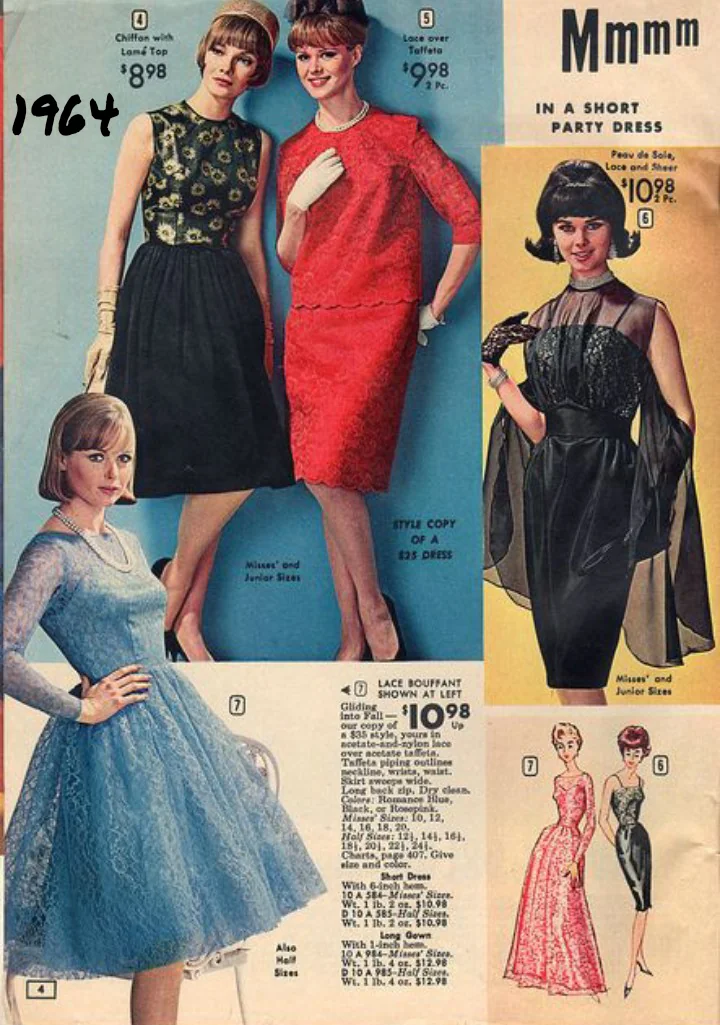 The 1960s was an era of pretty diverse fashion trends. You can see the influence coming off the more modern trends of the 50s, as well as the transition to ‘hippie’ fashion in the late 1960s.