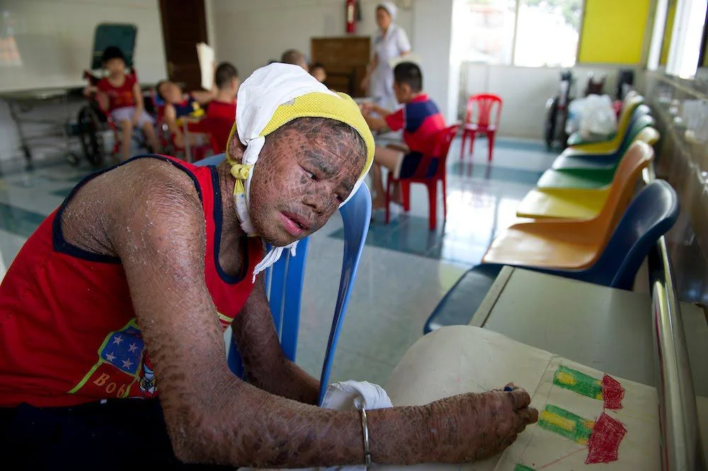 Agent Orange sufferer Tran Minh Anhborn, patient at the Peace Village in the Tu Du (Freedom) Obstetrics and Gynaecology Hospital in Ho Chi Minh City, Vietnam (14/10/1994)