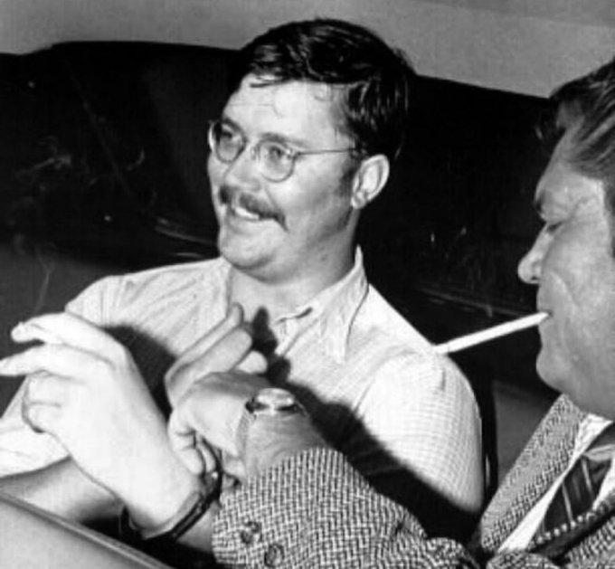 Two prison guards posing for a photo with Ed Kemper, who was 6’9 and 300 lbs.