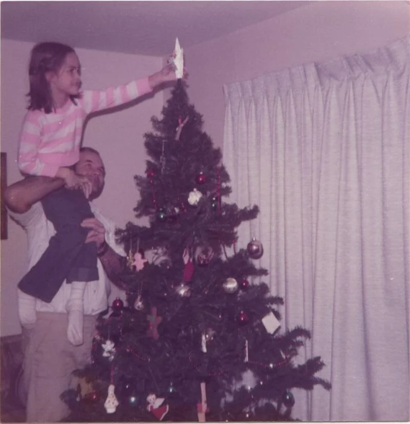 BTK decorates a Christmas tree with his daughter.