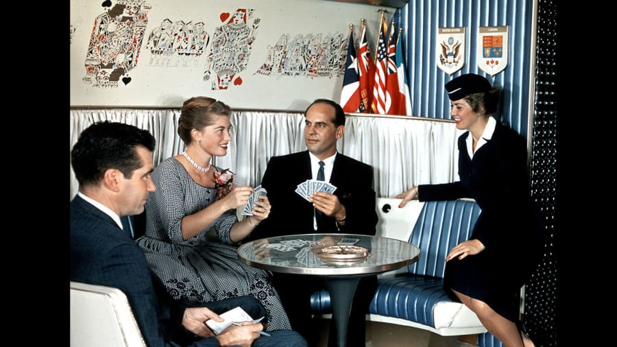 A girl and her father play a game of checkers.Flying First Class in the 1960s.A snack on a Scandinavian Airlines flight, 1969KLMKLMInside a Boeing 747IberiaIberiaIberiaInside an Alaska Airlines Convair 880 M-6 in the 1960s. U.S. National Archives.Travelers sit on large couches without seatbelts.BA Speedbird [Heritage] CentreChild passenger takes his pick of chocolate, 1960sA bar in the sky.KLMFlight attendants for the now defunct Pacific Southwest Airlines.A young Richard Nixon and friends enjoy a game of cards.Dean Conger / Getty ImagesKLM BA Speedbird [Heritage] CentrePassengers recline, 1950s. Douglas Miller / Stringer / Getty Images A waiter serving a couple in the air.Stunning inflight snacksSacha Distel performs mid-flight, 1959.Southwest Airlines flight attendants in the 1970s. San Diego Air and Space Museum Archive.The stunning interior of an early commercial airline.Swissair archivesKids enjoy a full-course meal.Swissair archivesBunkbeds for travelers to sleep in.A woman enjoys caviar, salad nicoise, and a charcuterie platter.Swissair archivesSwissair archivesPhoto by SAS Museum CC BY 2.0 Photo by SAS Museum CC BY 2.0 Photo by SAS Museum CC BY 2.0 Photo by SAS Museum CC BY 2.0 Photo by SAS Museum CC BY 2.0Photo by SAS Museum CC BY 2.0 Photo by SAS Museum CC BY 2.0 Photo by SAS Museum CC BY 2.0