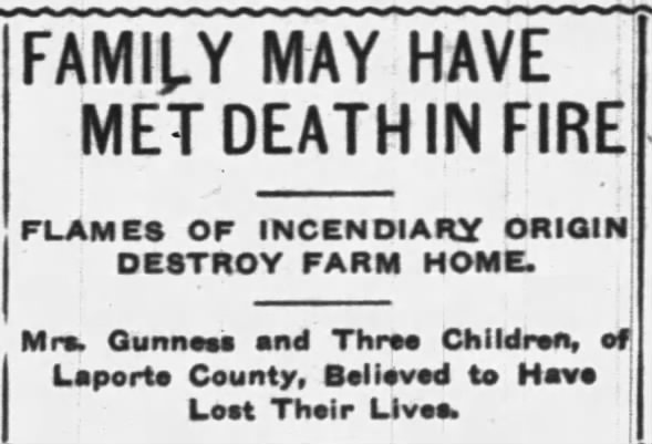 The remains of Belle’s children were found still in their beds. A headless body was also found in the basement and was initially assumed to be Belle’s. Many believed that they had all died in the devastating fire.