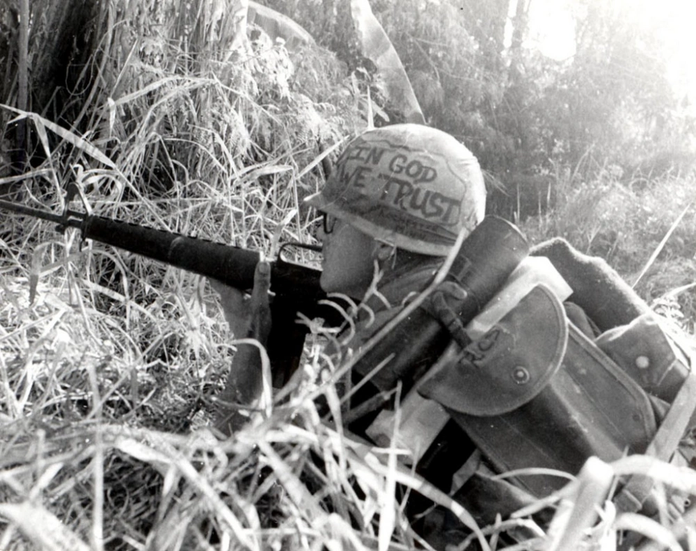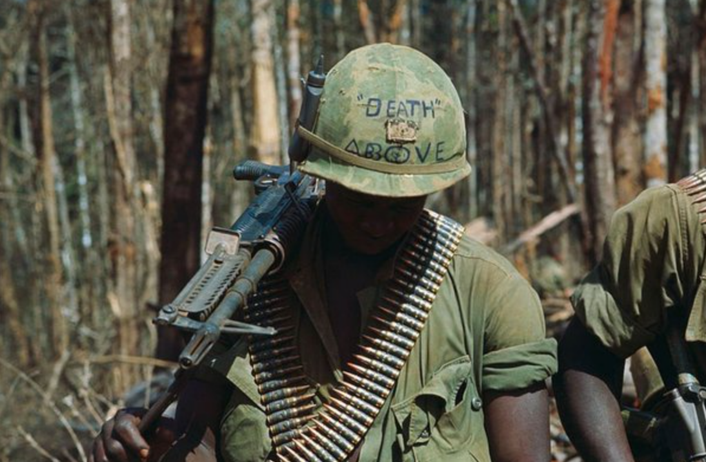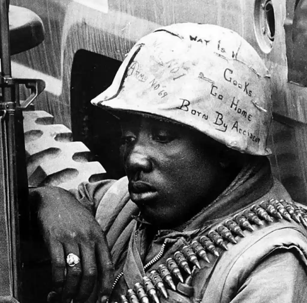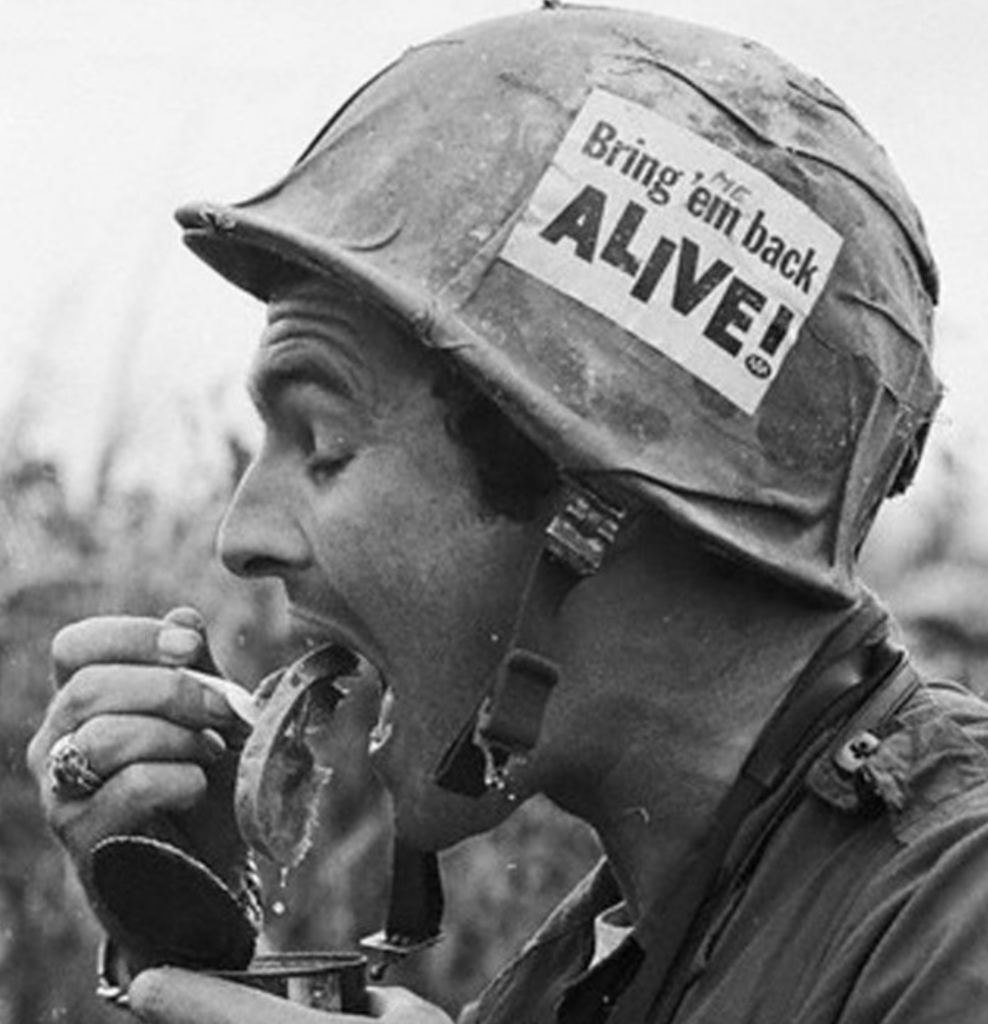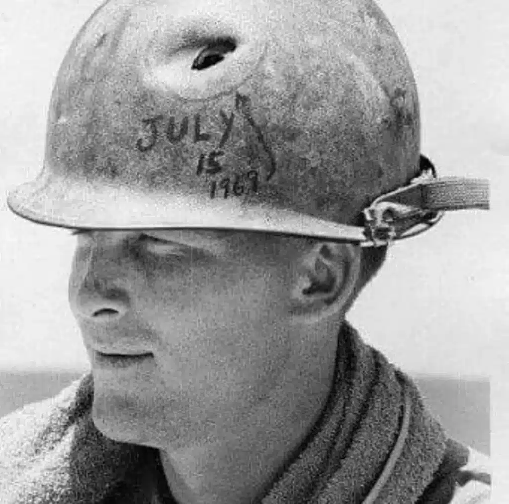 The photograph of this soldier and his helmet graffiti was taken by photojournalist Horst Faas on June 18, 1965, during the Vietnam War with the 173rd Airborne Brigade Battalion. It has become one of the most iconic and unforgettable images to come out of the Vietnam War.