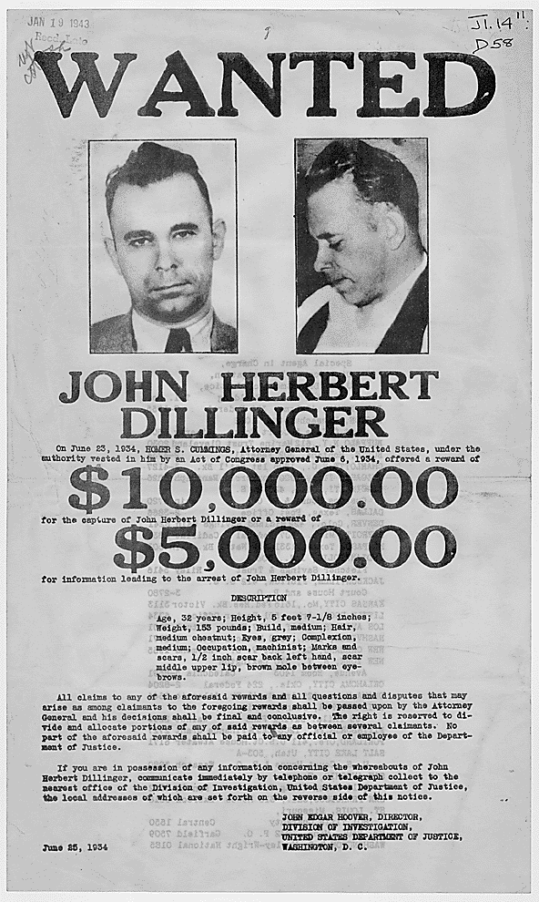 FBI. “John Dillinger.” FBI.gov. https://www.fbi.gov/history/famous-cases/john-dillinger.