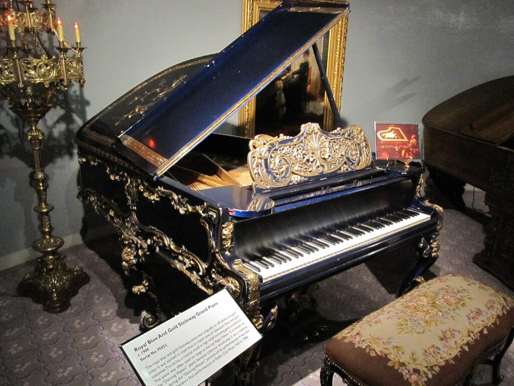 He purchased a rare, oversized, gold-leafed Blüthner Grand piano. In subsequent years, he bedazzled the audience with an array of ostentatious, custom-decorated pianos–some encrusted with rhinestones and mirrors.