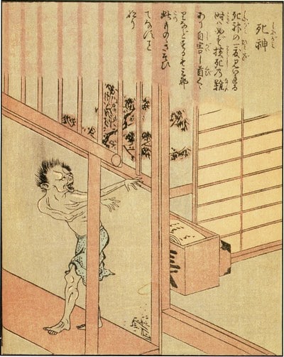 As we mentioned before, it’s difficult to determine the role of these death gods. For instance, consider several famous books like the Ehon Hyaku Monogatari in 1841 or the Mekuranagaya Umega Kagatobi in 1886, where the Shinigami are known as evil spirits.