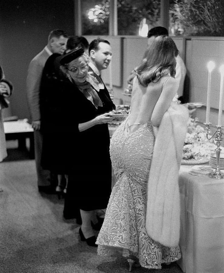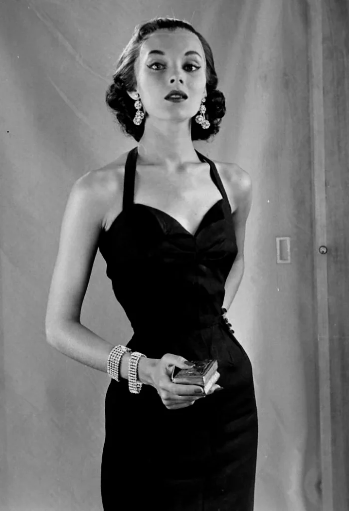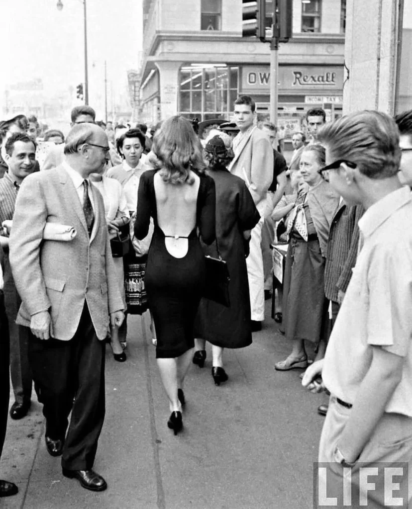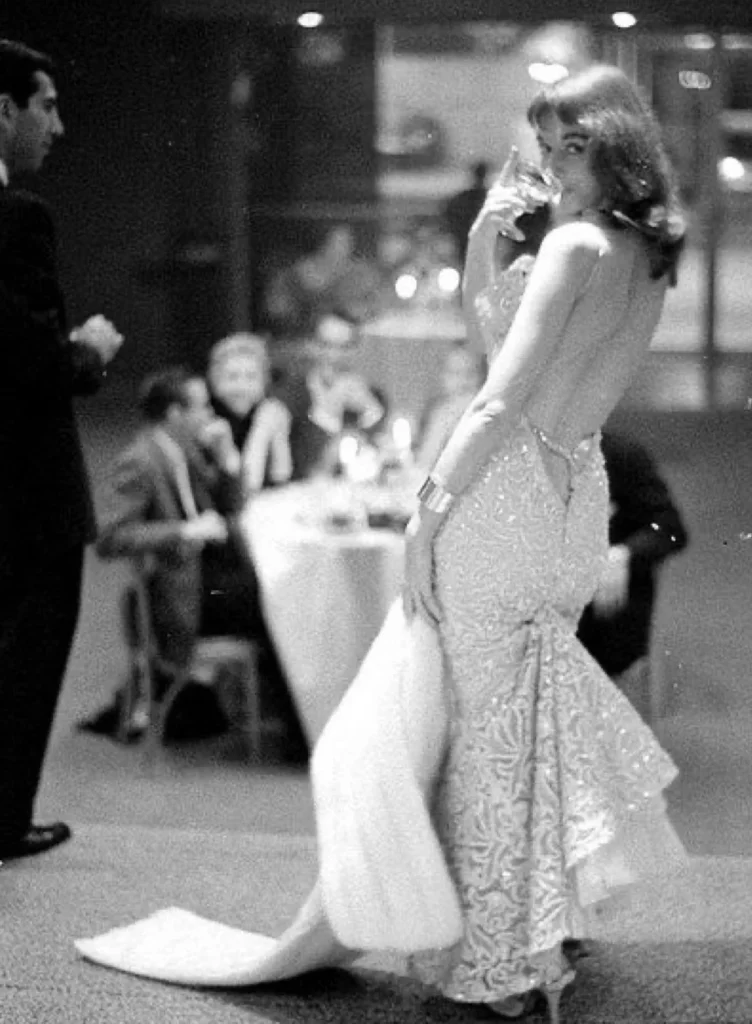Actress and model Vikki Dougan earned her nickname “The Back” due to her penchant for wearing strikingly low-backed dresses that accentuated her figure during the 1950s and 1960s. These distinctive outfits even inspired folk music group The Limelighters to pen a song about her, playfully imploring Dougan to “turn her back” on them.